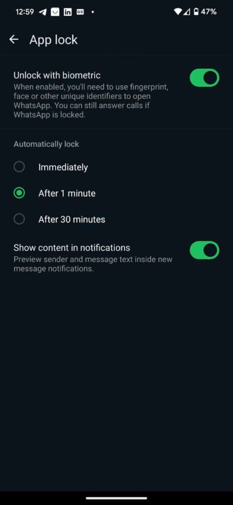 Lock WhatsApp with Face ID or Fingerprint