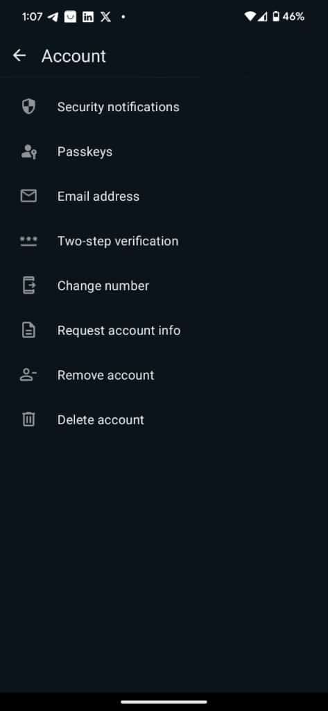 • Tap on Account>>Two-step verification.