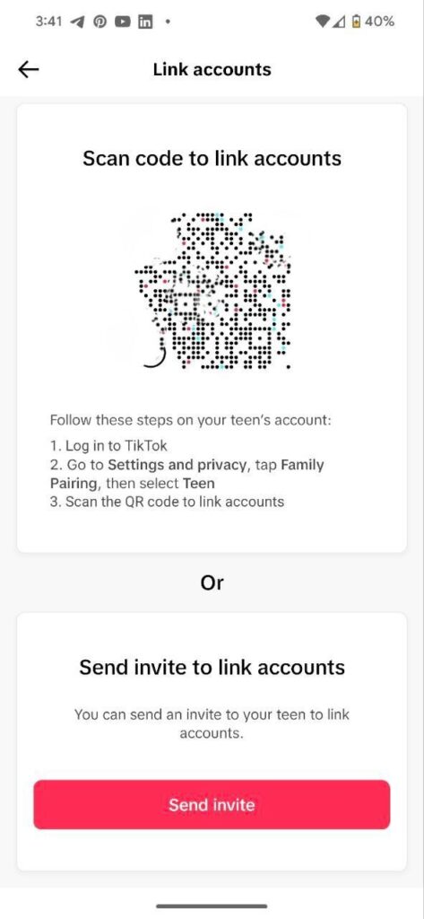 - With your kid’s account, scan the QR code on your device to link both accounts.