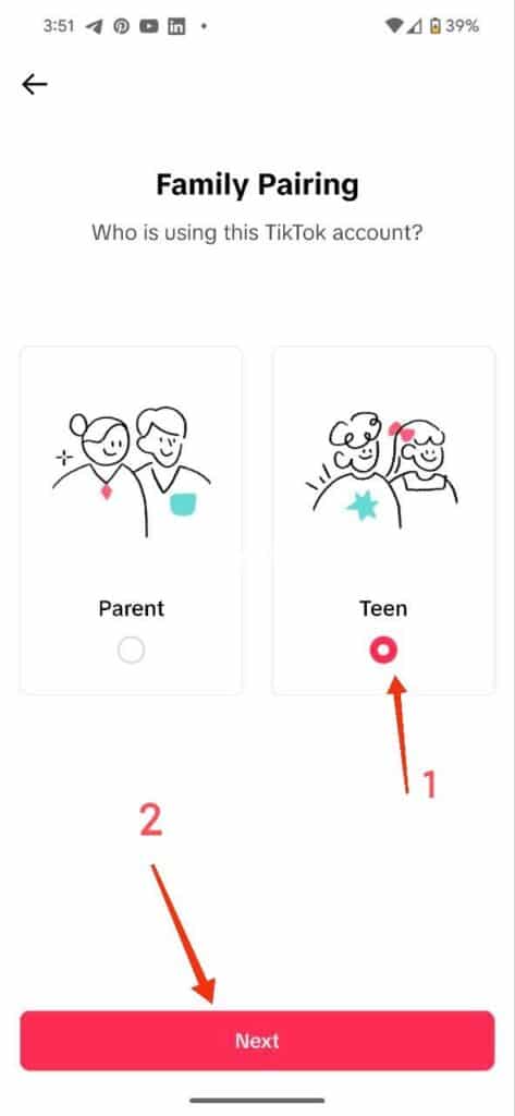 - Head to your Teen Account, click on the profile picture, and under settings, tap Family Pairing.