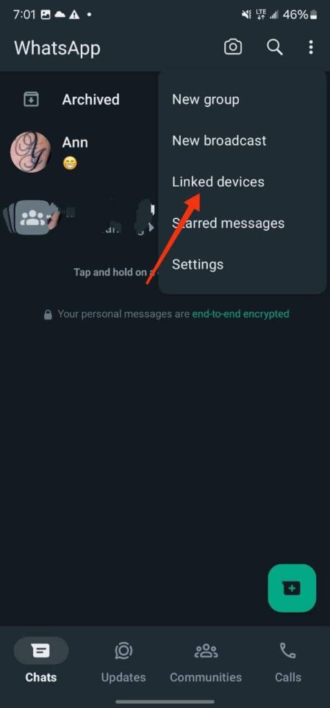 - Launch the WhatsApp app to check if someone has linked your WhatsApp account to their phone.